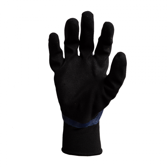 Guante tejido de puño elastizado con doble baño en Nitrilo, el primer baño completo de Nitrilo le aporta la mayor tenacidad a la penetración del líquido y el segundo baño Nitrilo Sandy (arenado) le aporta un Grip iniguala-ble en contacto con superficies oleosas, diseñados para trabajos en ambientes agresivos; el Nitrilo proporciona una excelente durabilidad en tareas donde exista mucha abra-sión, tiene una alta resistencia al contacto de superficies con derivados de hidrocarburos como aceites y grasas.