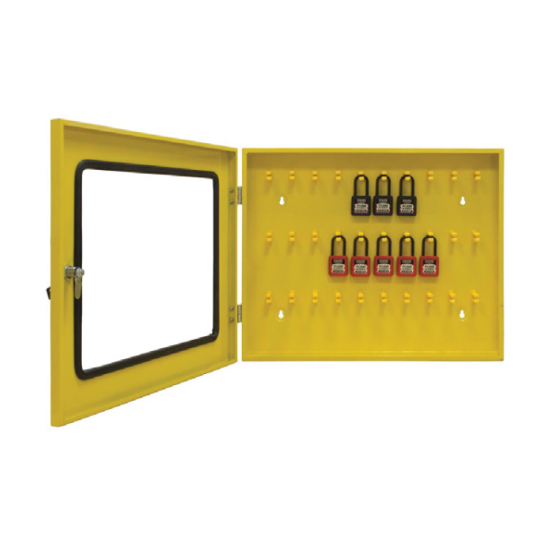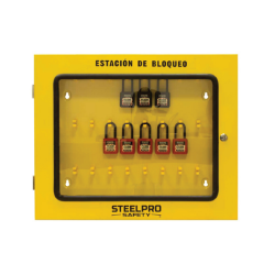Posee 60 ganchos que permiten el almacenamiento de can[1]dados, pinzas, etiquetas y otros equipos de bloqueo. Medidas: 45,5 cm de alto x 39 cm de ancho x 5,5 cm de profundidad